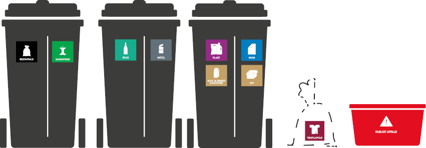 - tre styk 240-liters to-delte beholdere og en miljøkasse til farligt affald.